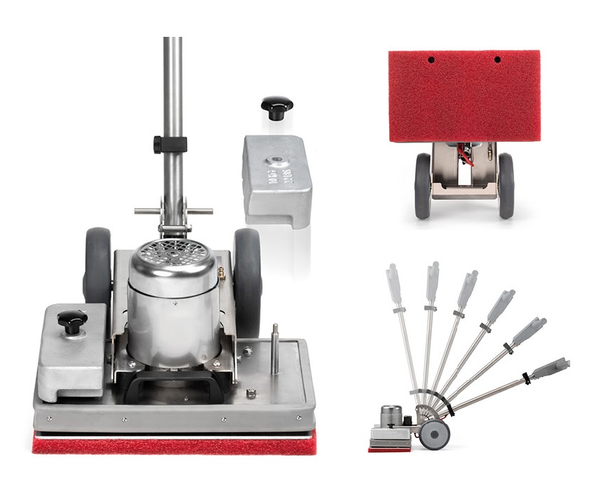 Zum Reinigen, Renovieren, Polieren oder Schleifen/Schmirgeln von Fußböden. Mit einem 40-25 cm breiten Deck ist die Excentr 40-25 die Alternative zur Einscheibenmaschine. Ideal für die Reinigung, Tiefenreinigung, Abisolierung und leichte Renovierung von kleinen bis mittleren Oberflächen! Die 2850 U/min in Kombination mit einem Paddruck von 45 kg garantieren fantastische Ergebnisse in kürzester Zeit. Darüber hinaus ist die Excentr 40-25 sehr einfach und ergonomisch zu bedienen! In den meisten Fällen arbeiten Sie ohne Zusatz von Chemie. Ein Scheuerbehälter kann am Excentr40-25 montiert werden.