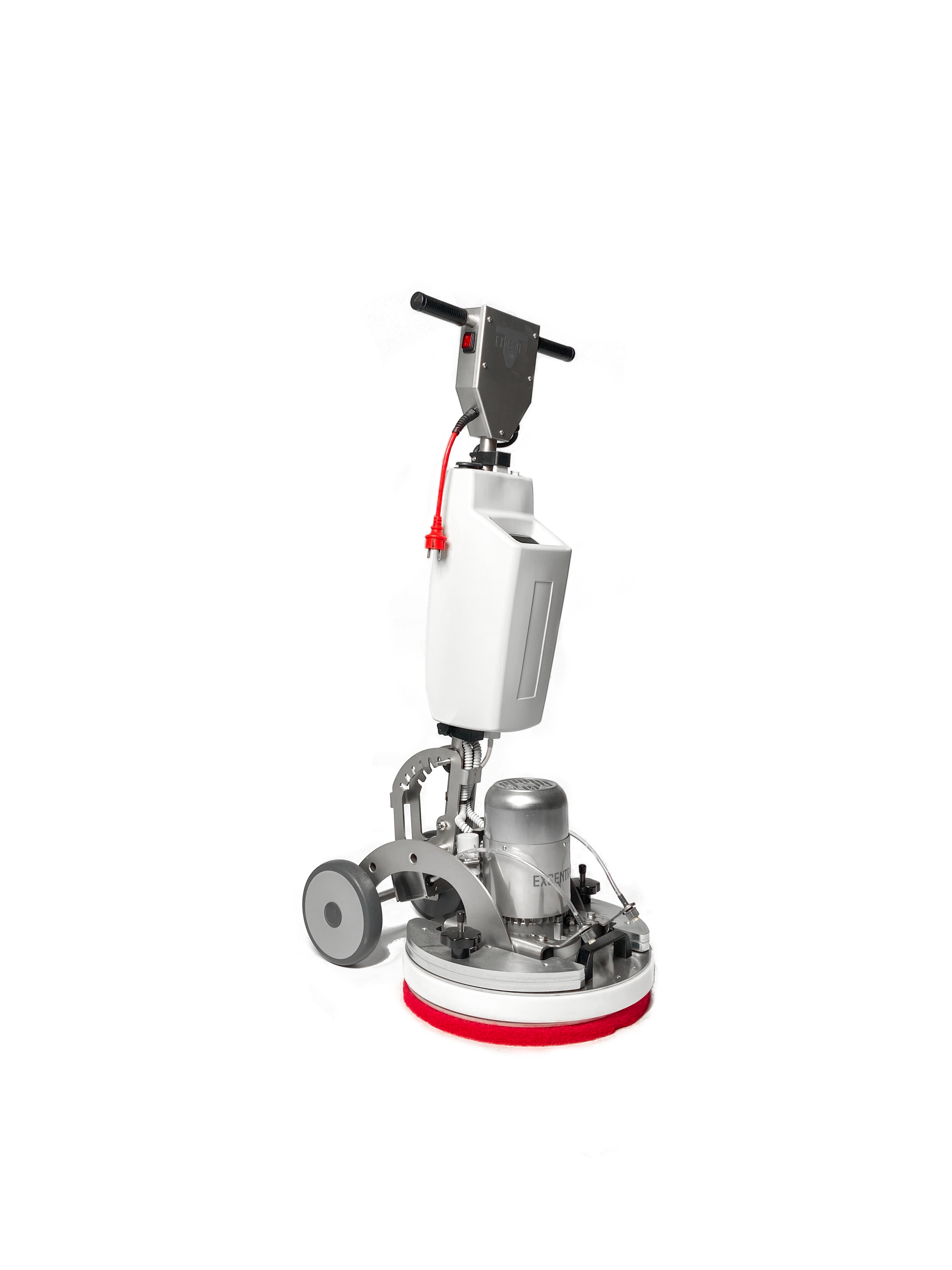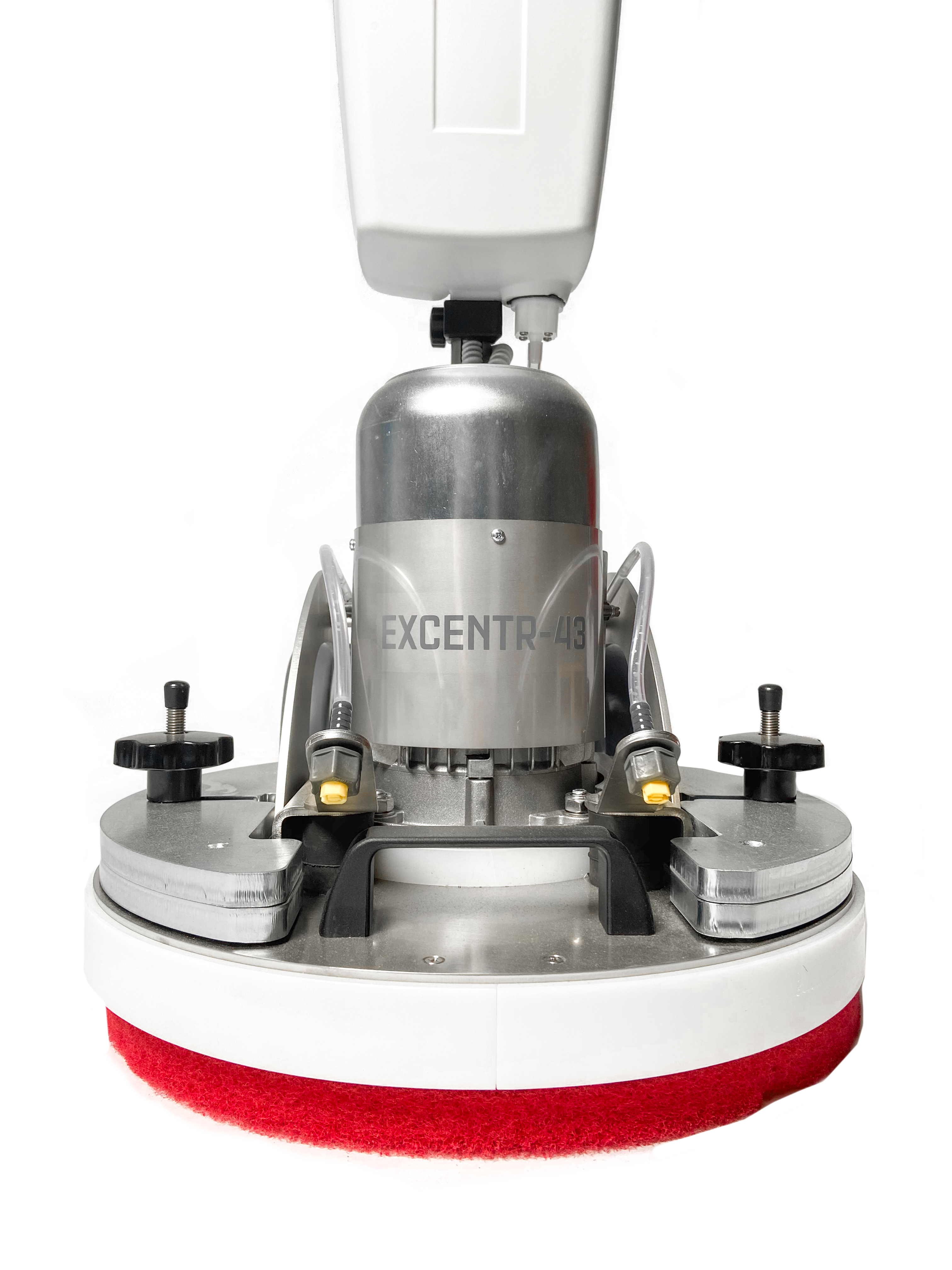 Der Excentr 43 kombiniert die exzentrische Bewegung mit einer Drehbewegung wie eine Einscheibenmaschine. Diese Bewegungskombination, die auch Orbitalbewegung genannt wird, ist auf harten und weichen Böden sehr wirkungsvoll. Der Excentr 43 hat wie der 55-35 ein variables Gewicht. Der Paddruck liegt durch das zusätzliche Gewicht zwischen 40 und 80 kg. Aufgrund der zwei Bewegungsarten ergibt sich eine optimale Mischung aus Gleichgewicht und extrem guter Reinigungskraft. Die Arbeit mit dem Excentr 43 ist kinderleicht und sehr ergonomisch. Die Maschine ist mit einem Sprühsystem ausgestattet der die Reinigsflotte gleichmäßig und kontrolliert auf der Oberfläche verteilt. Ideal für das Arbeiten auf Teppichen und bei Intensivreinigungen! Der Excentr 43 wird für Reinigung, Beschichtung entfernen und Polieren vieler Böden verwendet.